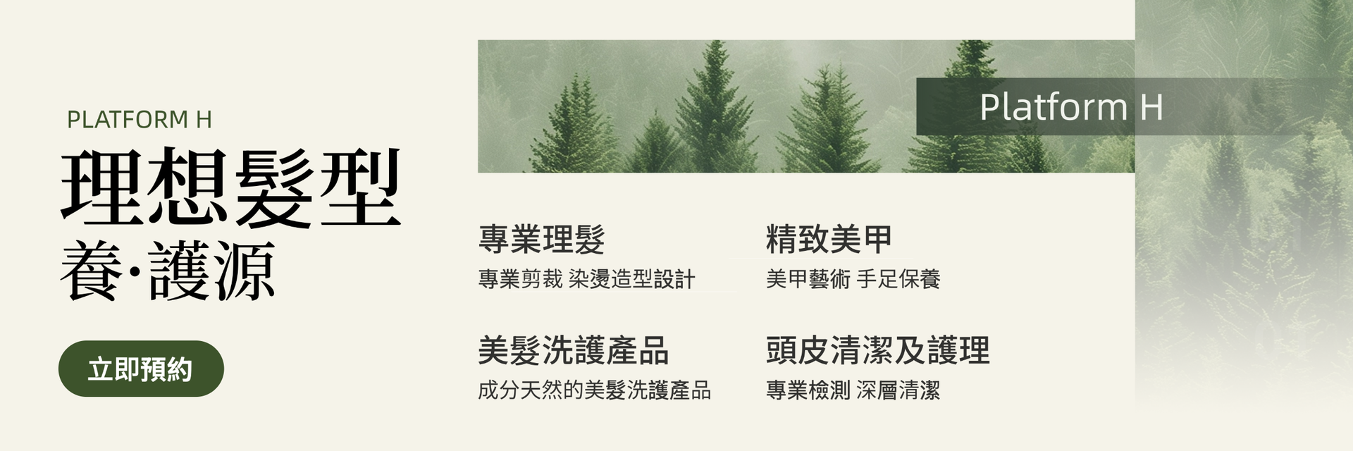 在 Platform H,我們擅長依顧客需求。本店積累逾30年經驗,量身設計髮型與個人護理方案,並專精於防脫髮根源養護。歡迎預約諮詢。